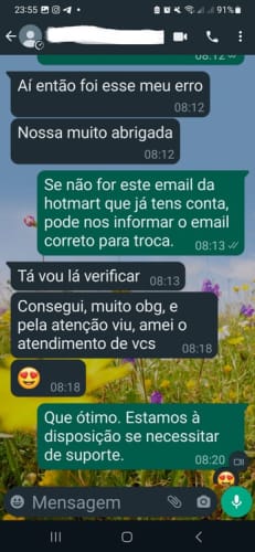 Suporte por email e whatsApp
