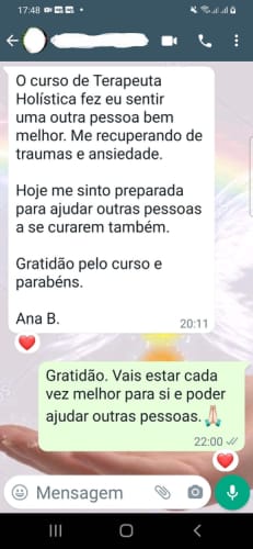O estudo e aprofundamento em Terapias Holísticas veio transformar a minha vida, expandindo a minha consciência para uma nova visão de ascensão, de saúde, equilíbrio energético e de compreensão.